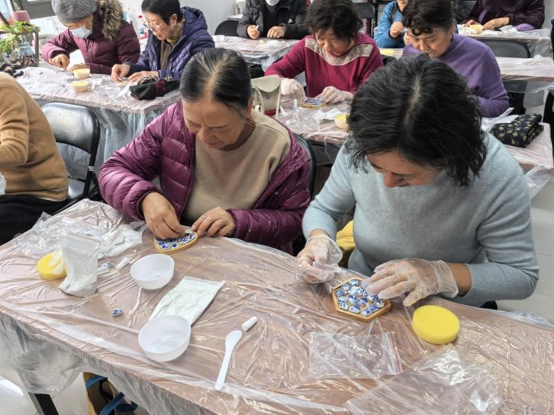 活动现场,社区工作人员提前准备了废旧陶瓷碎片、闲置彩釉瓷片、胶水、杯垫基底等材料。在手工老师的指导下,居民们首先学习了垃圾分类的基础知识,了解到陶瓷碎片属于可回收物,通过创意改造能实现资源的二次利用。随后,大家化身“手工达人”,将各色瓷片按照青花瓷的传统纹样进行拼贴、裁剪、粘贴。从勾勒线条到填充图案,从调整色彩搭配到固定边缘,每一个步骤都凝聚着大家的巧思。原本看似无用的“垃圾”,在大家的手中摇身一变,成为了兼具实用性与观赏性的马赛克杯垫。居民们纷纷表示,这次活动不仅锻炼了动手能力,更让大家直观感受到“变废为宝”的魅力,今后会更加重视垃圾分类,积极践行绿色生活。